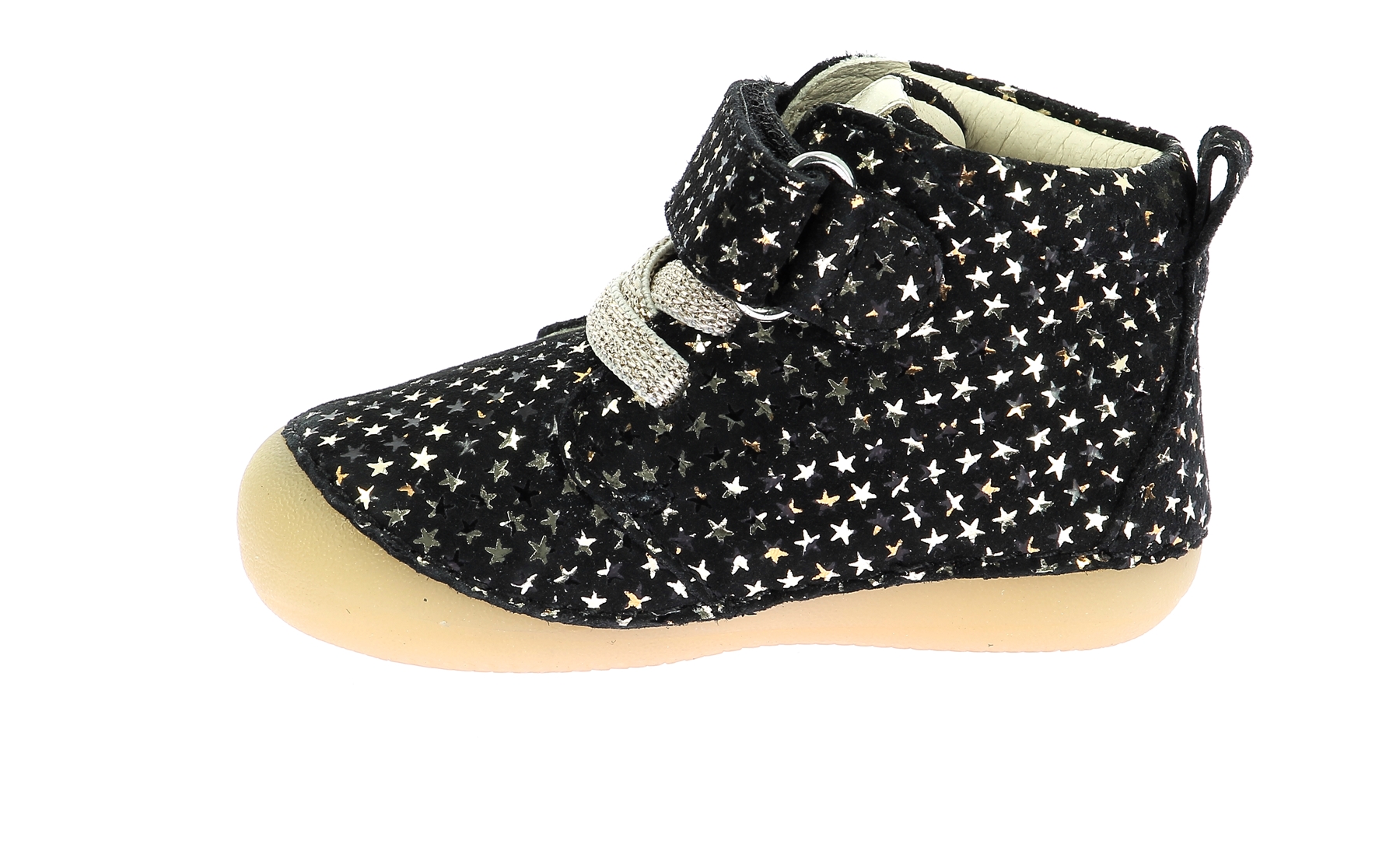 BOTIN MODELO RESPETUOSO. SE TRATA DE UN MODELO CON UNA SUELA MUY FLEXIBLE Y ROBUSTA QUE PERMITE UN MAXIMO DE LIBERTAD EN LOS MOVIMIENTOS. CIERRE DE ELASTICOS Y UN VELCRO QUE LE DA INDEPENDENCIA A LA NIÑA, PLANTILLA EXTRAIBLE Y REFUERZO DELANTERO. SON RESISTENTES, PRACTICAS Y COMODAS. ZAPATO QUE COMBINA EL USO DE MATERIALES DE CALIDAD Y DISEÑO MUY CUIDADO. DISEÑO EN COLOR NEGRO CON MINI ESTRELLITAS DORADAS.