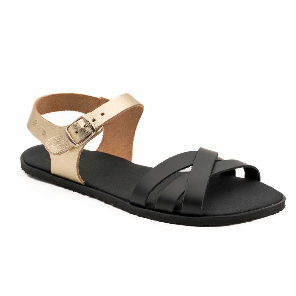 SANDALIA BAREFOOT DE MUJER O JOVEN, DESDE LA TALLA 37. TIENE LA PUNTERA ANCHA, ES UN ZAPATO MUY LIGERO Y FLEXIBLE. HACE MUY BUENA COMBINACION DE COLORES, NEGRO Y DORADO. ES UNA SANDALIA IDEAL PARA DIARIO Y PARA OCASIONES ESPECIALES QUE TE APORTAN COMODIDAD.