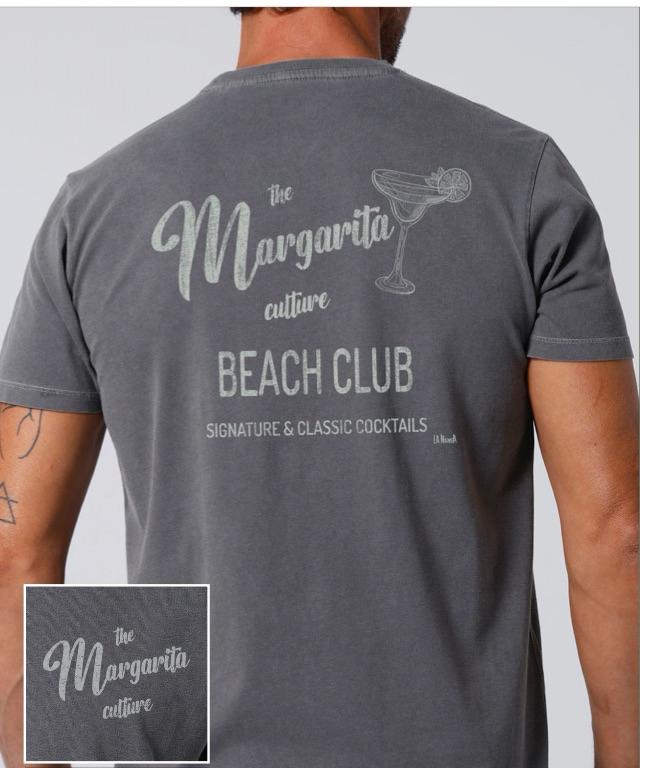 CAMISETA DE ALGODON UNISEX. ESTAMPADO TANTO POR DELANTE COMO POR DETRAS. CLUB BEACH CON DIBUJO DE UNA MARGARITA.