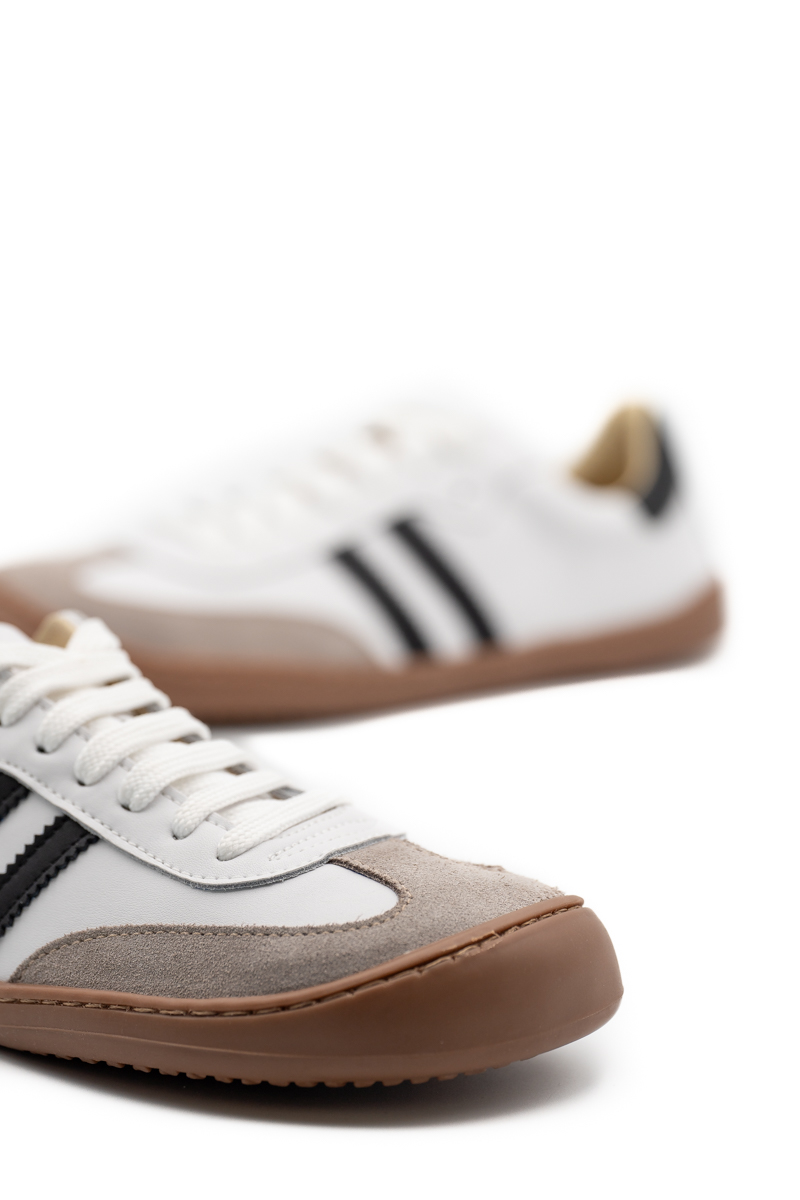 ZAPATO BAREFOOT DEPORTIVO IDEAL PARA CUALQUIER OCASIÓN. PUNTERA ANCHA Y REDONDEADA PARA QUE NO OPRIIMA EL PIE, SUELA FINA ENTRE 3 MM Y 5 MM, SON FLEXIBLES Y LIGEROS, LA ALTURA DEL ZAPATO ES IGUAL DESDE EL TALÓN HASTA LA PUNTERA QUE FAVORECE UNA BUENA ALINEACIÓN DE LA ESPALDA, PLANTILLA EXTRAIBLE Y AUSENCIA DE CONTRAFUERTE.